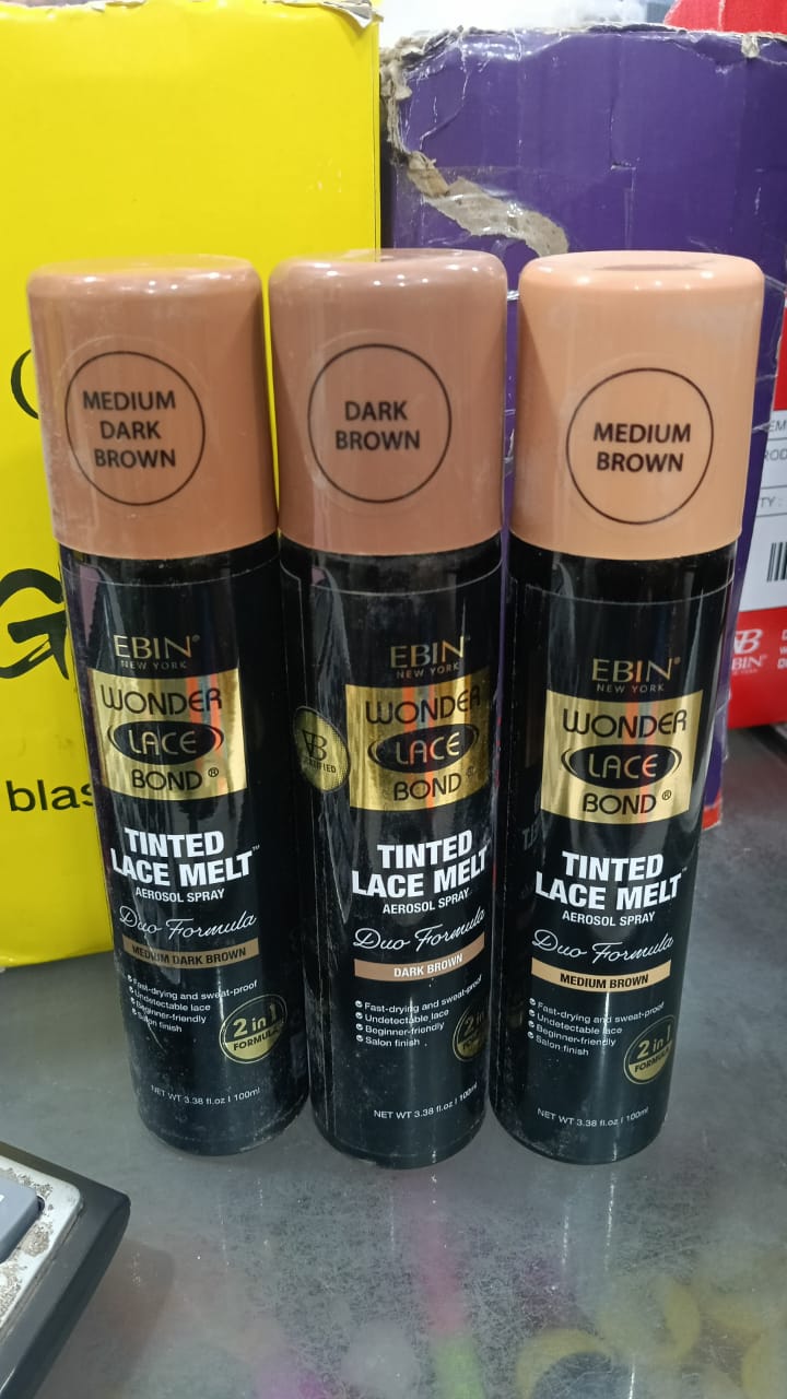 Le Ebin Tinted Lace Melt Spray est un spray lace wig teinté qui fixe, fond et unifie la lace pour un effet naturel et longue tenue.